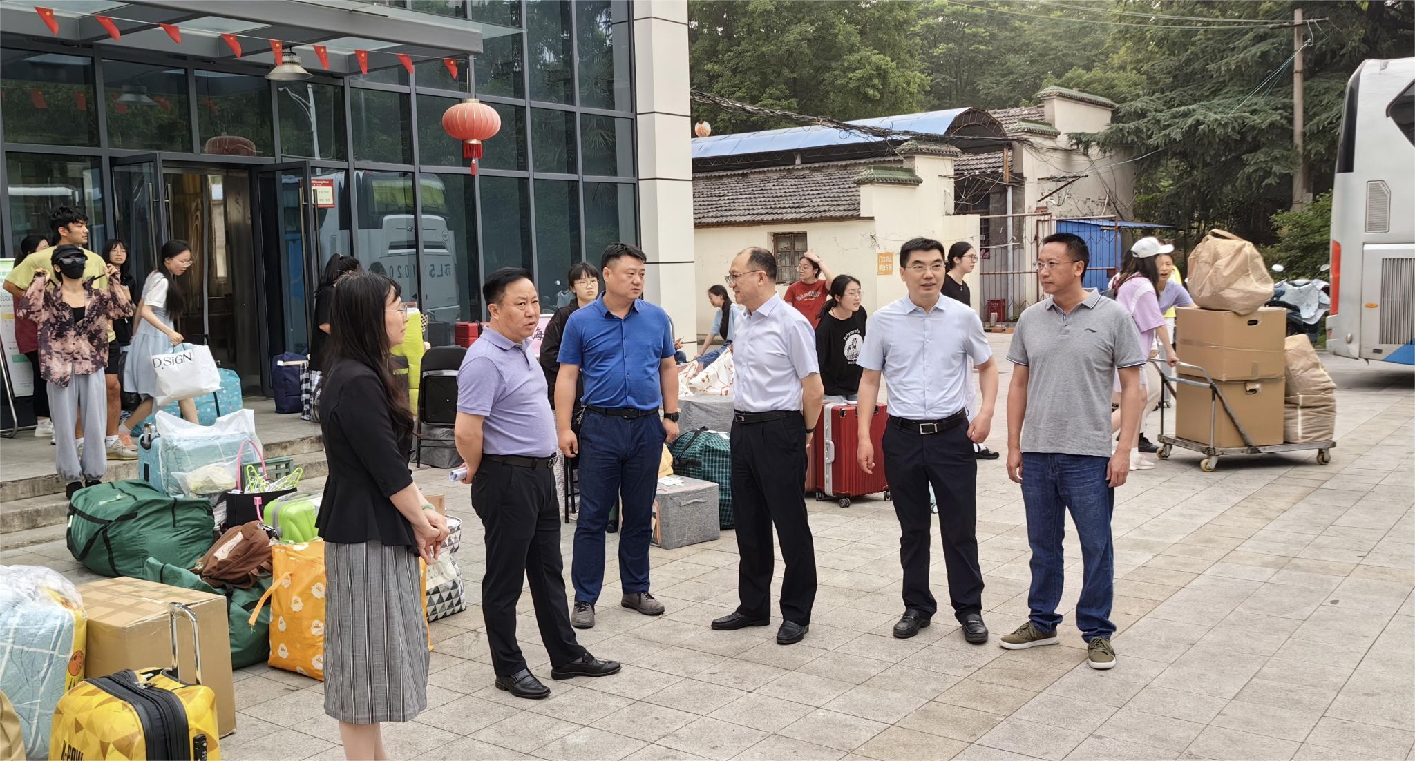 临床教学基地,进行临床实习。校党委常委、副校长张济建、医学部常务副主任殷朝峰、学工处处长王海军、保卫处处长袁海宇、后勤管理处处长王善民、第一临床医学院党委常务副书记袁国跃等负责人亲临现场指挥并欢送学生赴点实习。