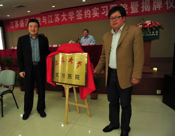 讲话并签约。医学部与临床医学院党委书记朱立新与盛泽医院胡寅副院长共同揭牌。仪式由盛泽医院副院长吕林荣主持。