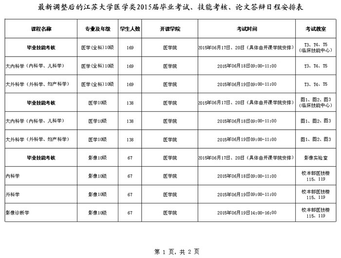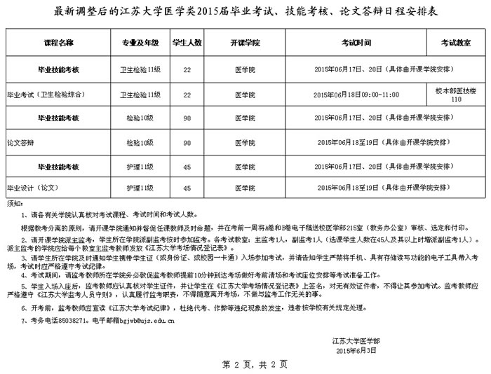 最新调整后的91porny 医学类2015届毕业考试、技能考核、论文答辩日程安排表