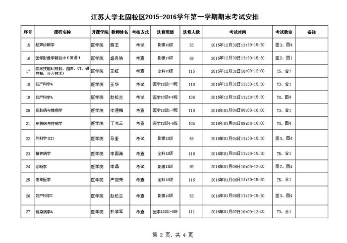 91porny 北固校区2015-2016-1期末考试安排