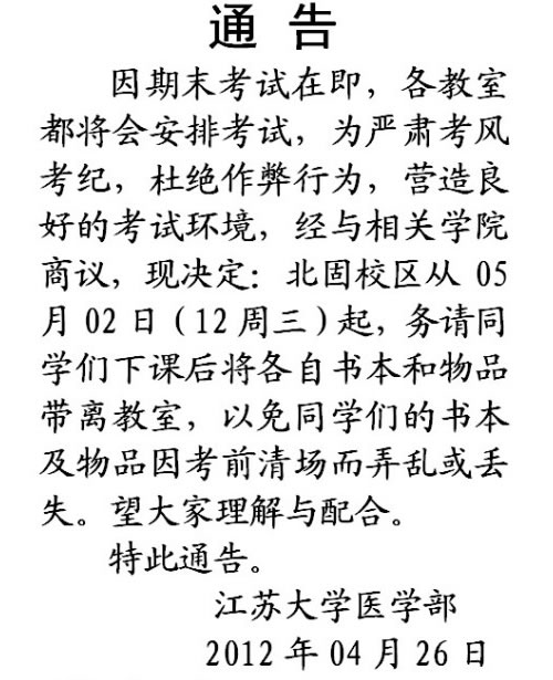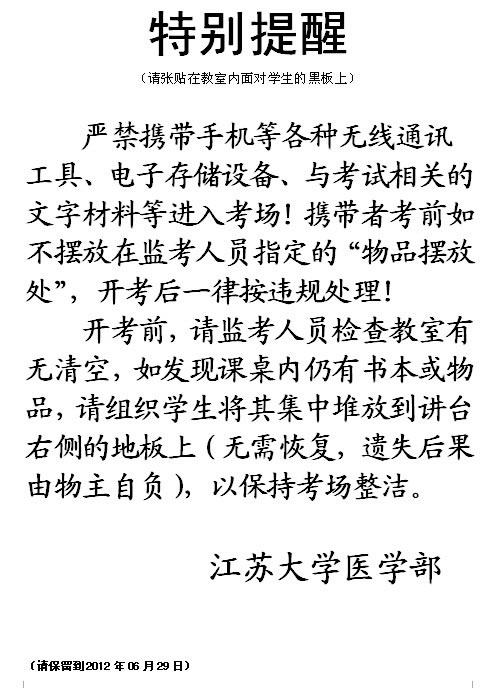 通告和考场特别提醒