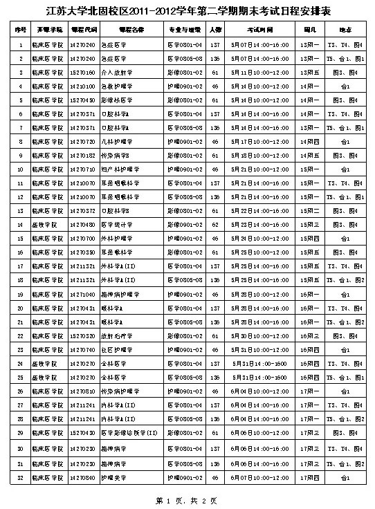 北固校区2011-2012-2期末考试安排表20120426.xls