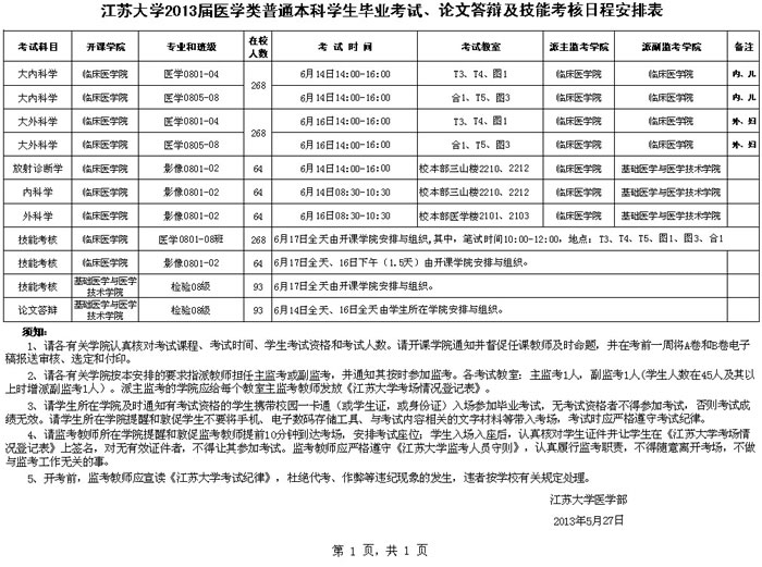 因端午节放假,医学类毕业实习学生返校时间有所调整。为此,医学类毕业考试、技能考核、论文答辩的时间安排作了相应变更。现公布如下: