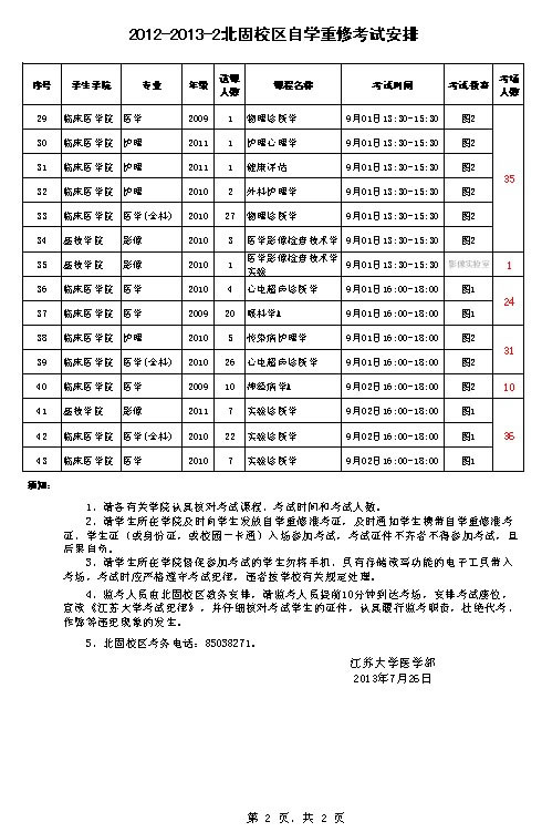 文档下载: 北固校区2012-2013-2自学重修考试安排.xls