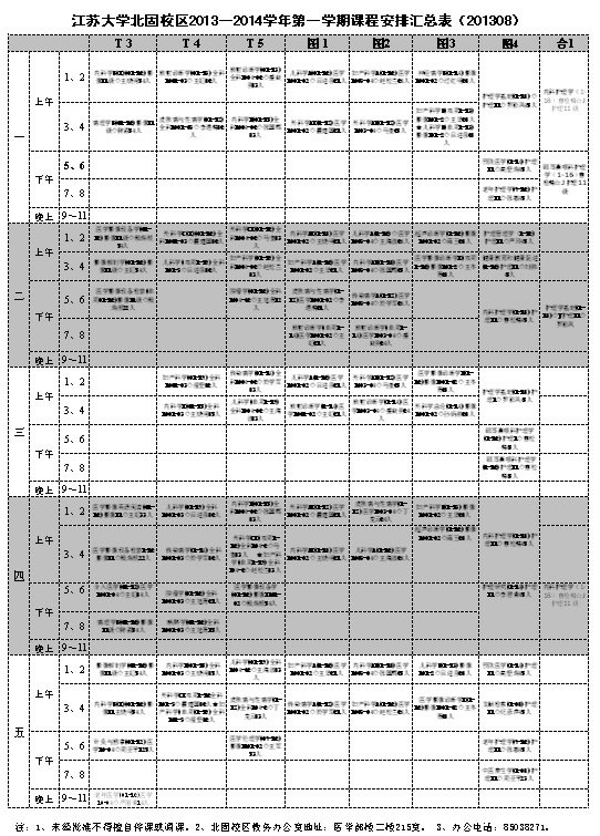 下载文档: 2013-2014学年第一学期北固校区总课表201308.xls