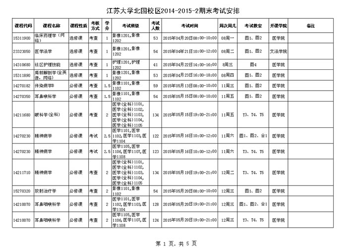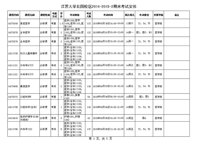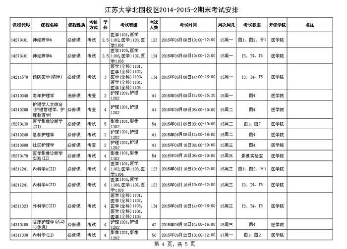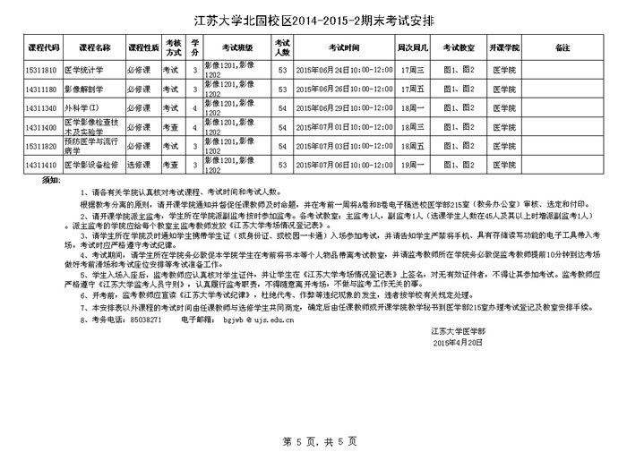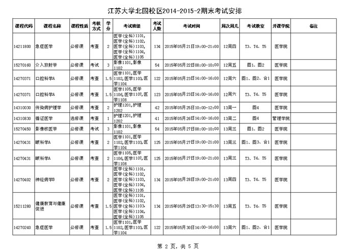 91porny 北固校区2014-2015学年第二学期期末考试安排