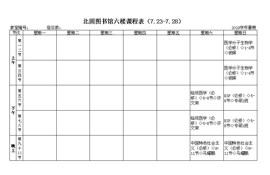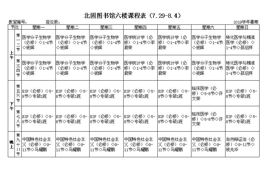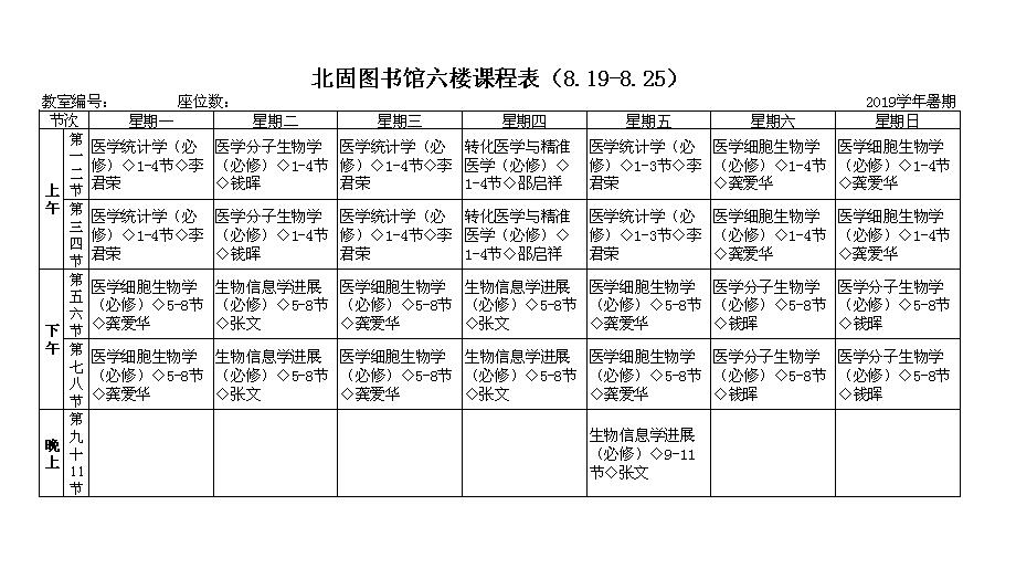 北固校区2019年级研究生暑期课表(图书馆六楼报告厅)