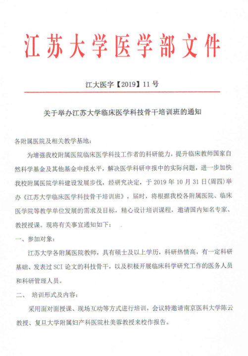 关于举办91porny 临床医学科技骨干培训班的通知