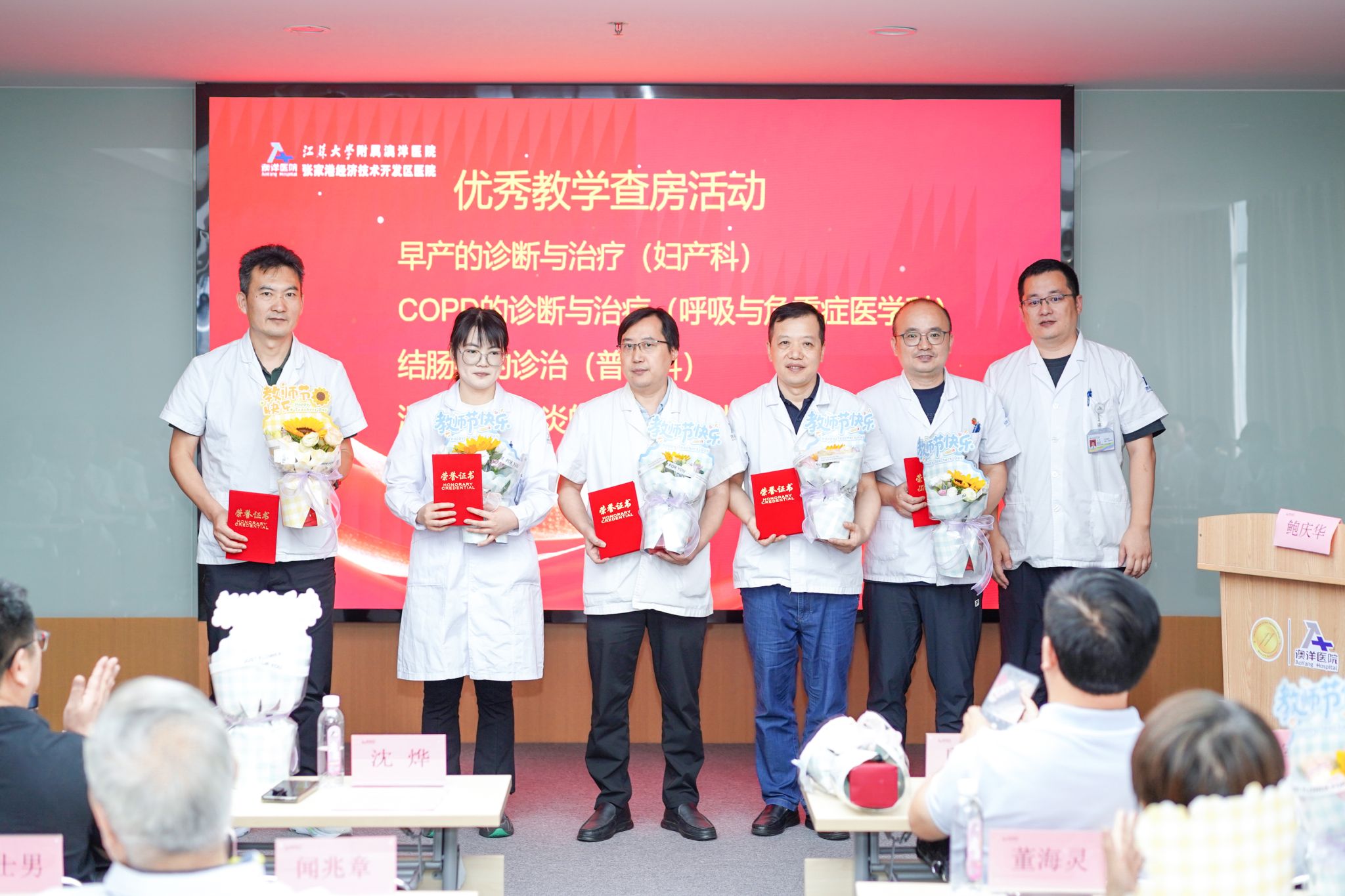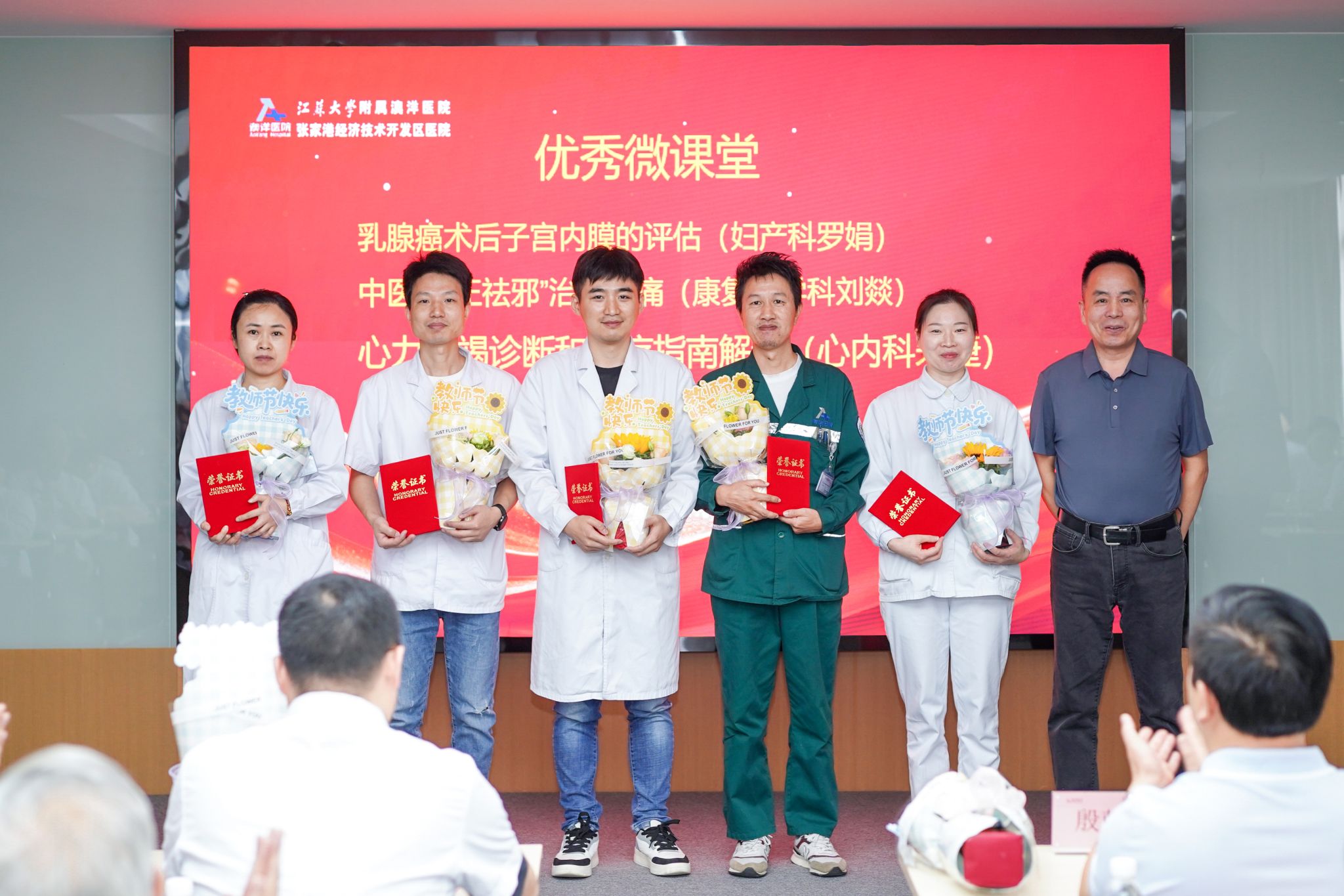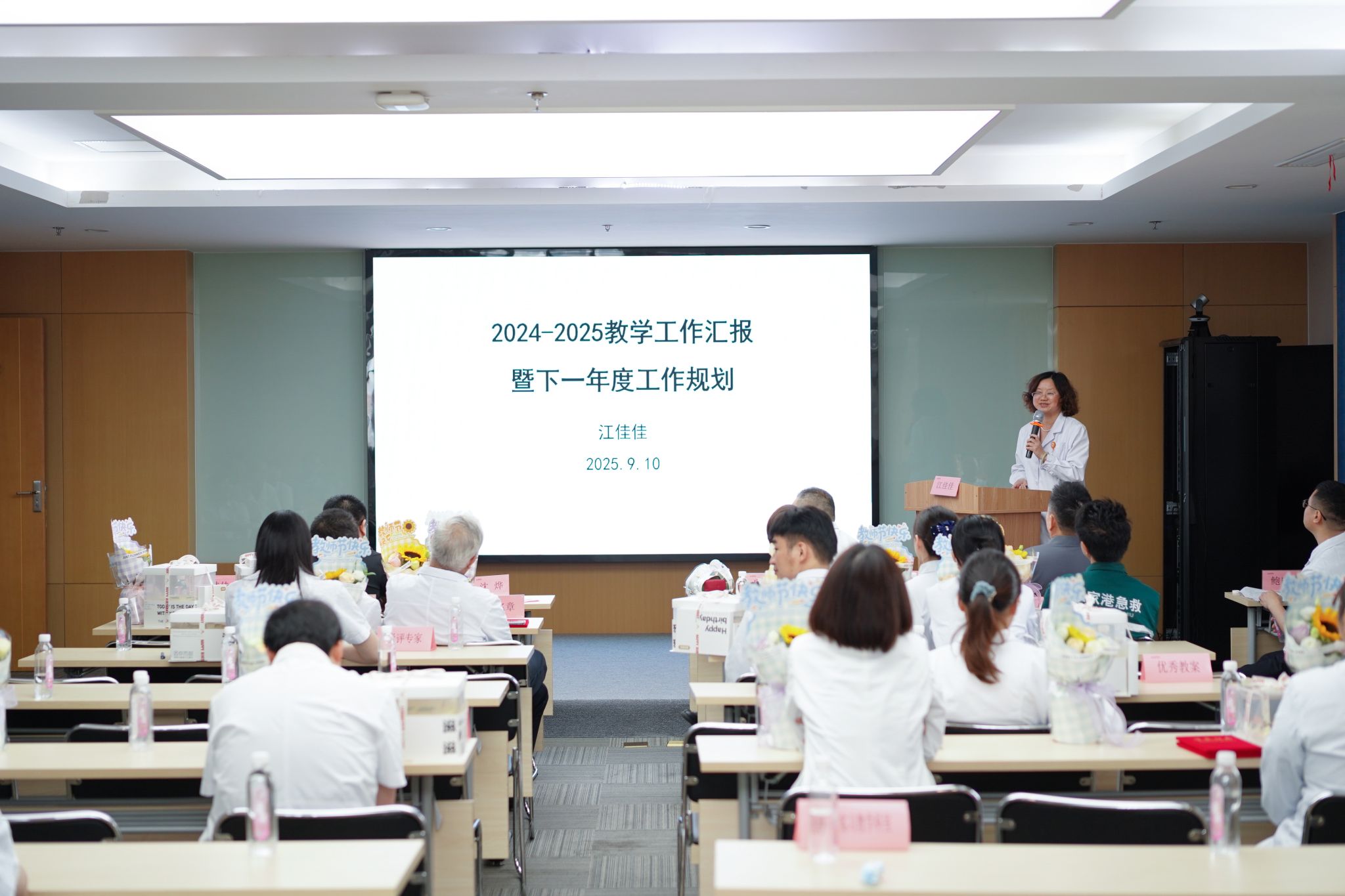 附属澳洋医院院长沈烨首先向坚守教学一线的带教老师们致以节日的诚挚问候,用“三个显著提升”勾勒过去一年教学工作的亮眼答卷:教学查房规范化率逐年提高,实现“查有所教、教有所获”;教案优良率较上年提升 30%,教学内容针对性与实用性显著增强;微课堂累计开展 30 场,覆盖师生超 2000 人次,教学场景持续拓展。